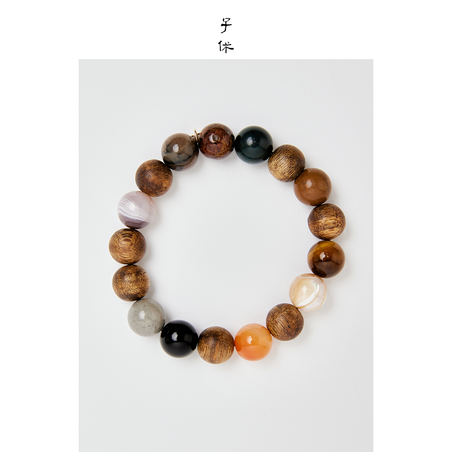 Wooden jewelry made of agarwood planted for over seven years and other natural materials; the bracelet emits a natural woody fragrance during wear.