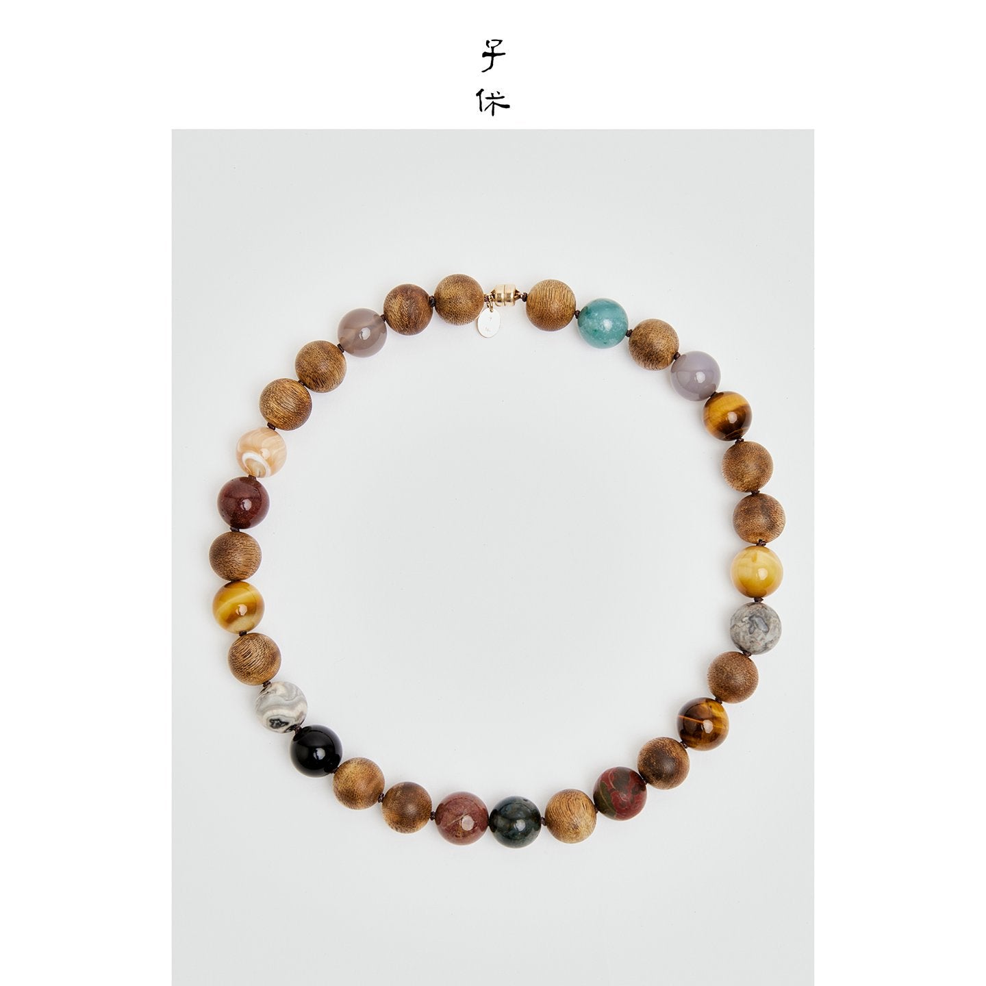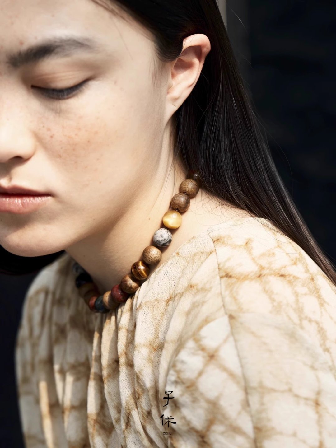 Wooden jewelry made of agarwood planted for over seven years and other natural materials; the necklace emits a natural woody fragrance during wear.