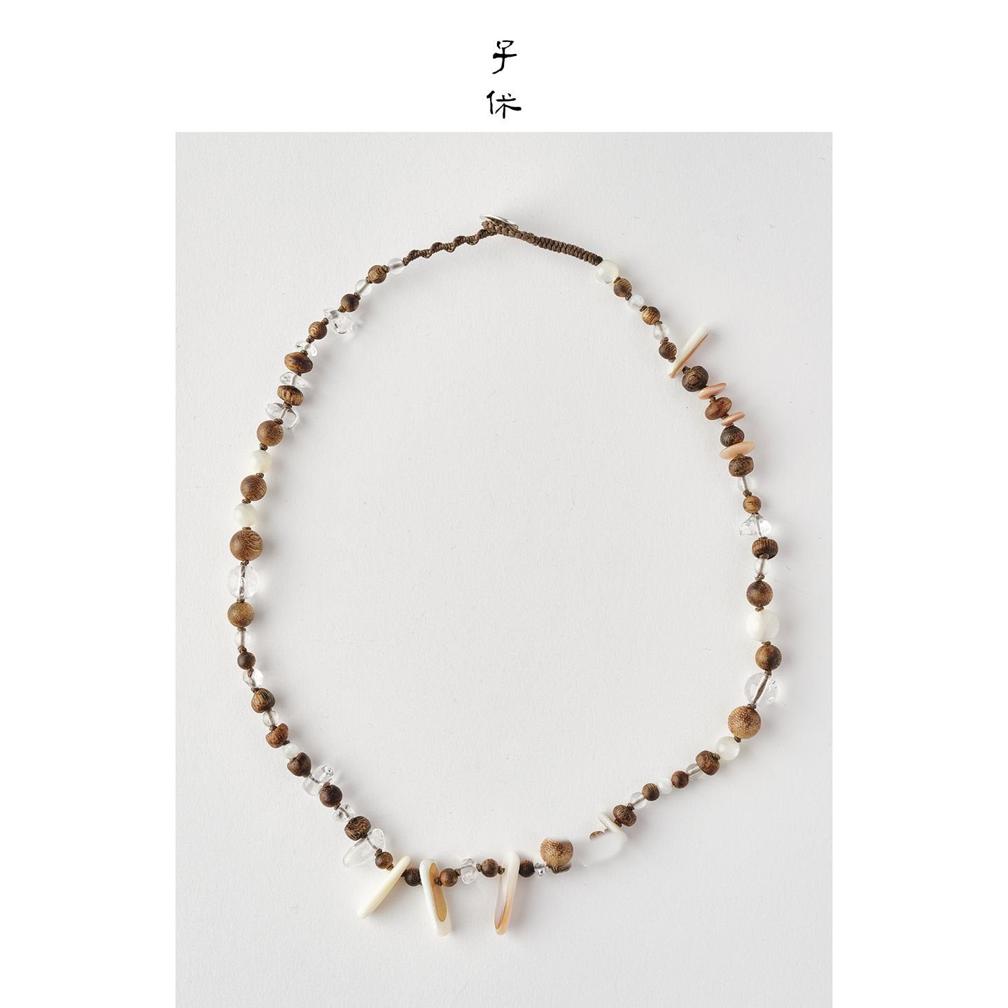 Tribal style outfit: There are a variety of natural shapes in the rhythm of wood and stone, and the horseshoe snail is interspersed like a tooth shape: the necklace is like a tribal accessory to make the shape out of the ordinary.