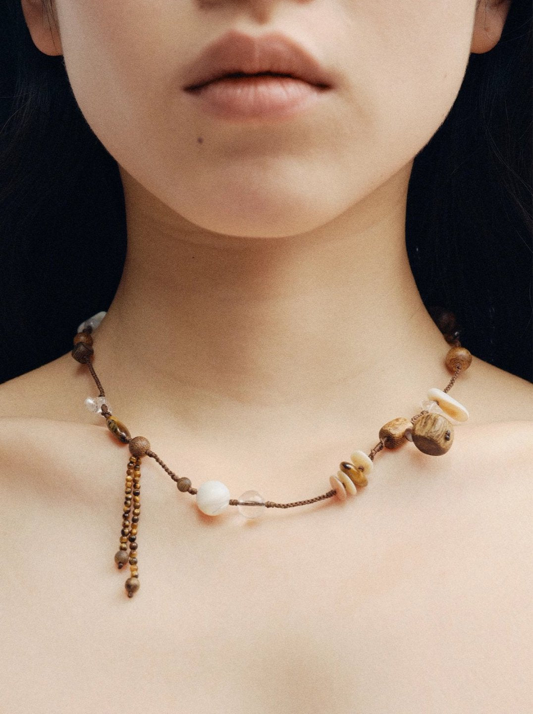 Wooden jewelry made of agarwood planted for over seven years and other natural materials; the necklace emits a natural woody fragrance during wear.