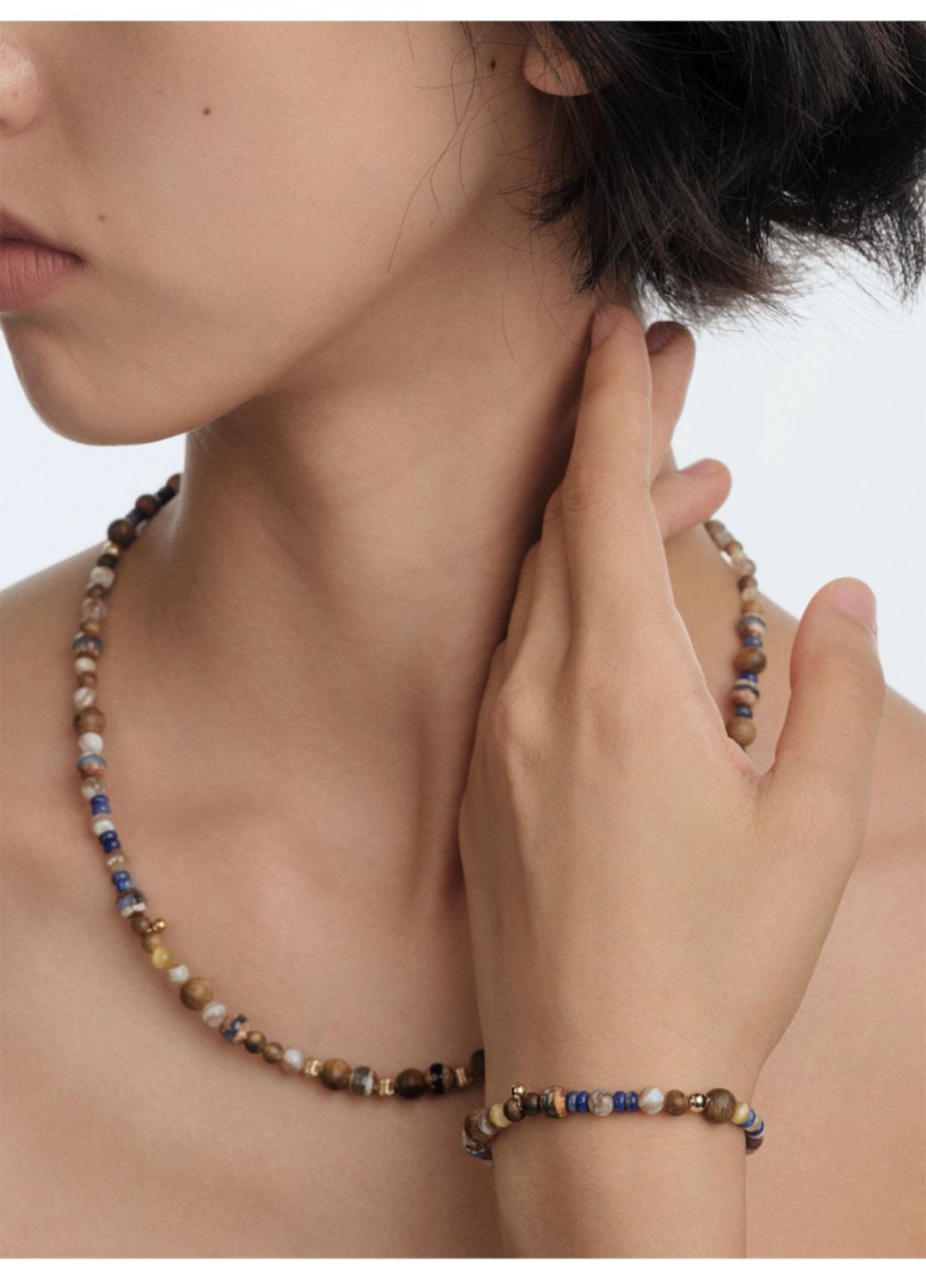 Starry sky deep blue: Selected lapis lazuli and tiger's eye, the blue flashes with golden light, just like a string of tiny blue stars.
