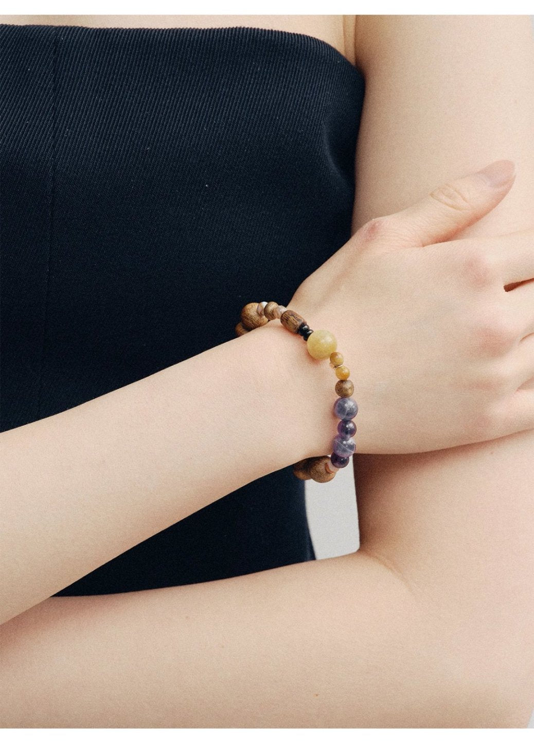 Wooden jewelry made of agarwood planted for over seven years and other natural materials; the bracelet emits a natural woody fragrance during wear.