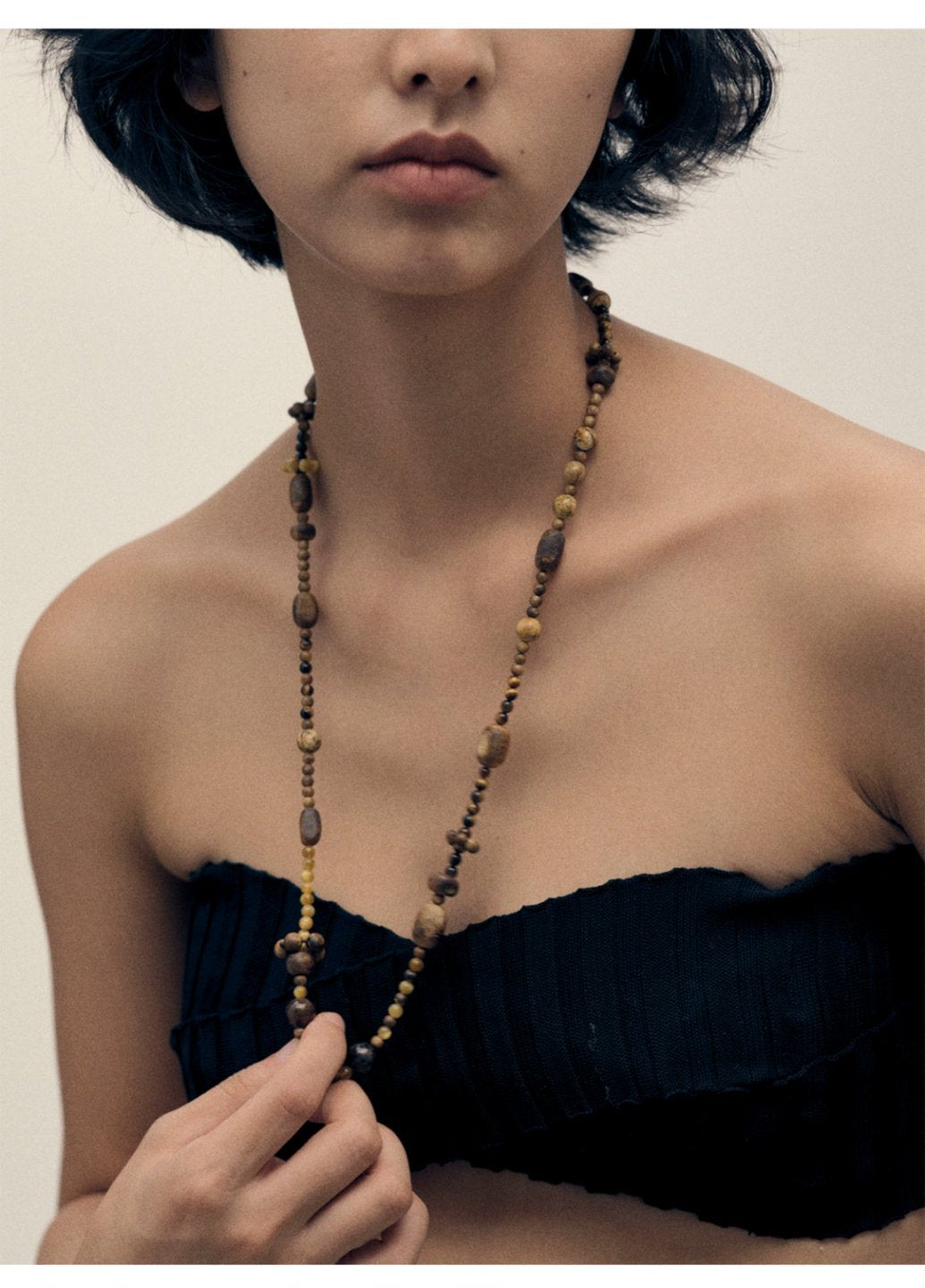 Wooden jewelry made of agarwood planted for over seven years and other natural materials; the necklace emits a natural woody fragrance during wear.