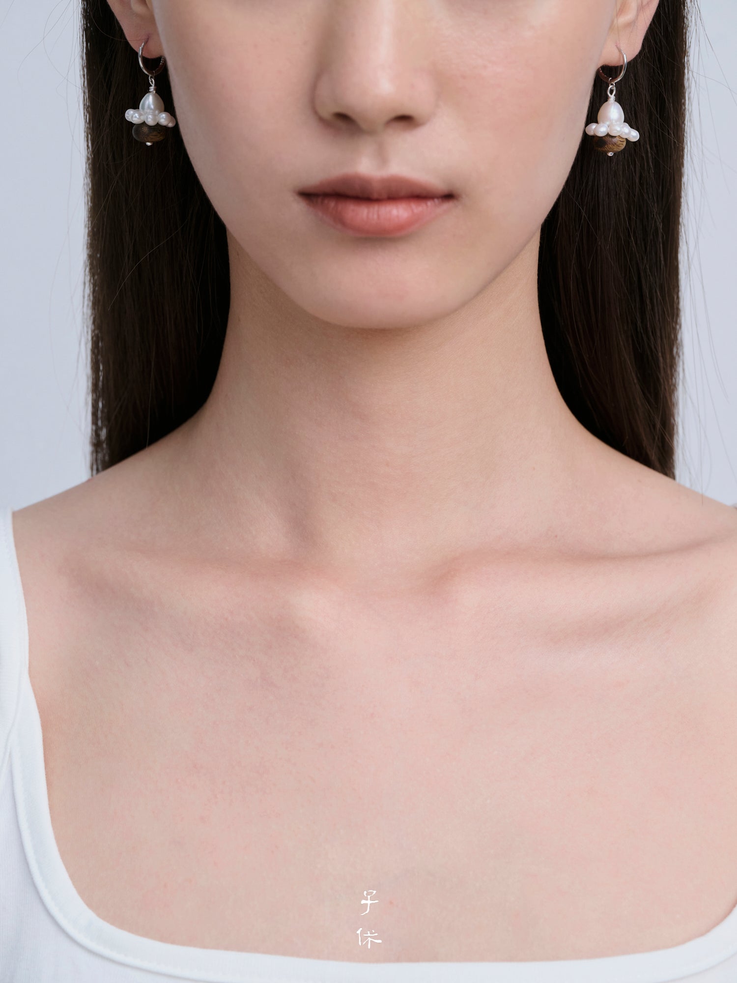 Artificially Cultivated Agarwood, Freshwater Pearl, 925 Silver Plated with 14K White Gold.