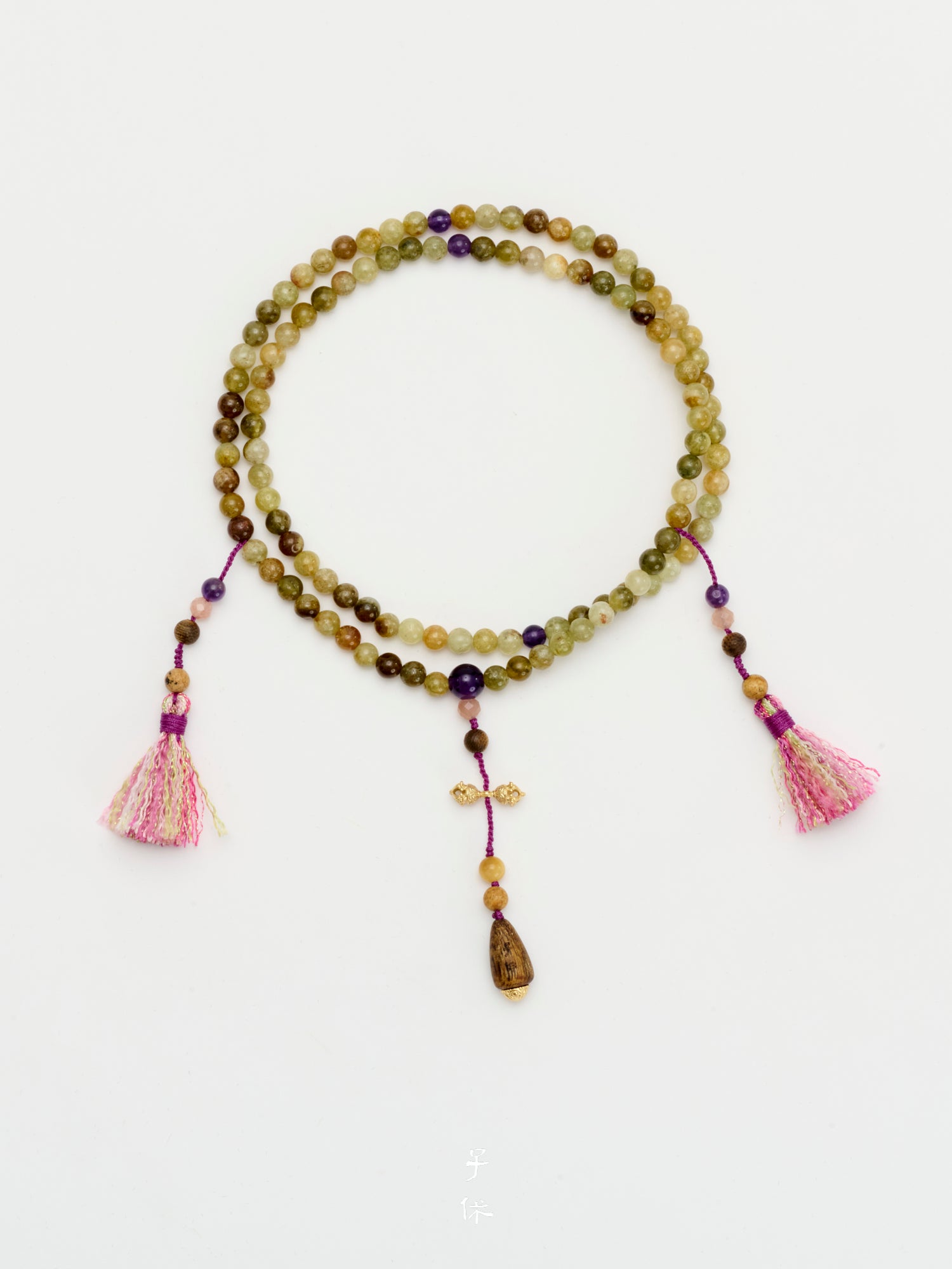 Artificially Cultivated Agarwood, Tsavorite Garnet, Amethyst, Copper Plated with 14k Gold, Hand-twisted Cotton Thread, Jade Thread.