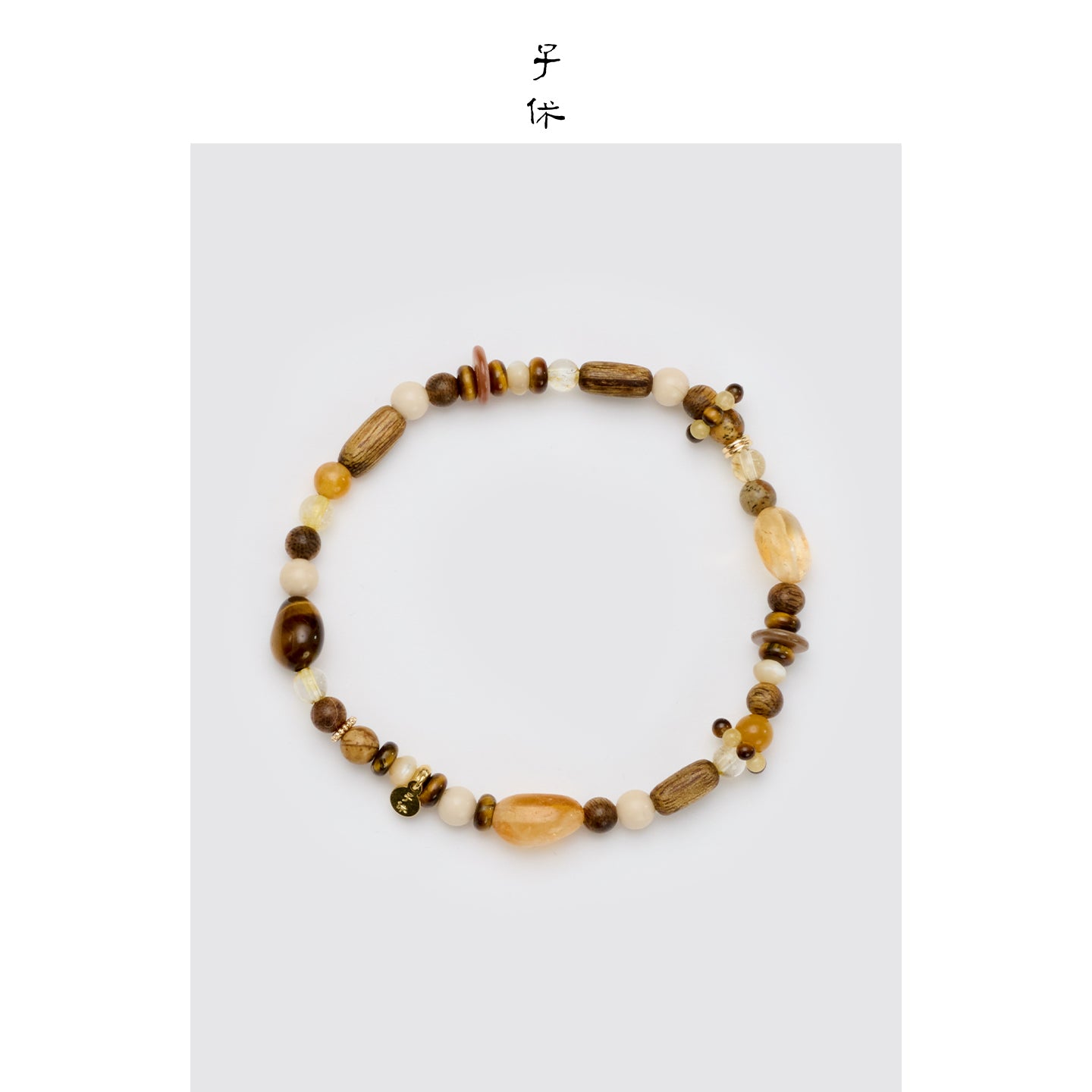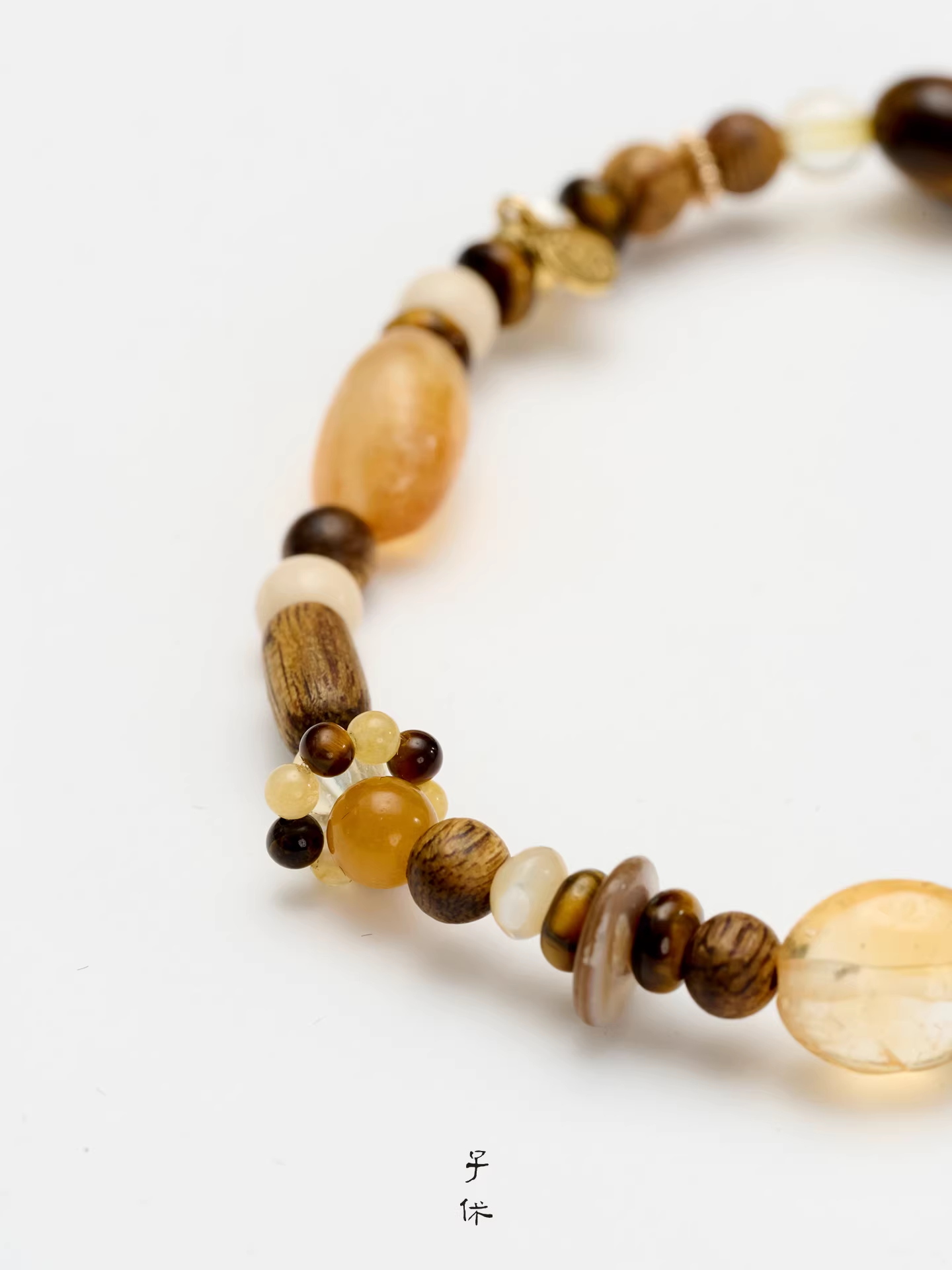 Artificially Cultivated Agarwood, Citrine, Horseshoe Snail, Fossil Stone, Tiger’s eye, Yellow Topaz, American 14K Gold-plated.